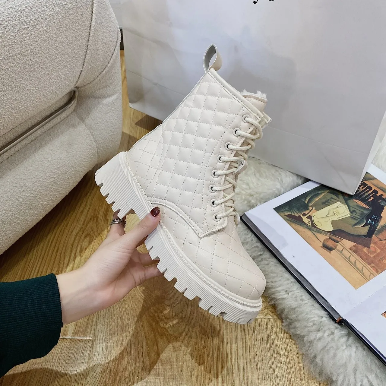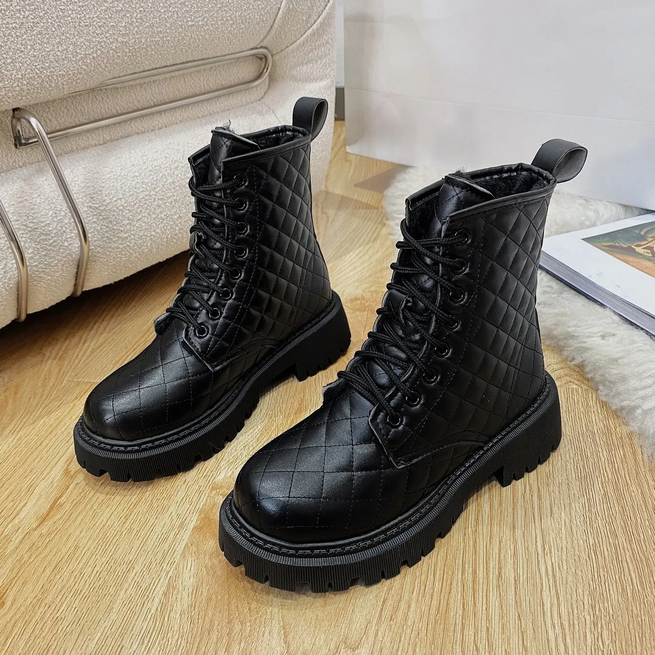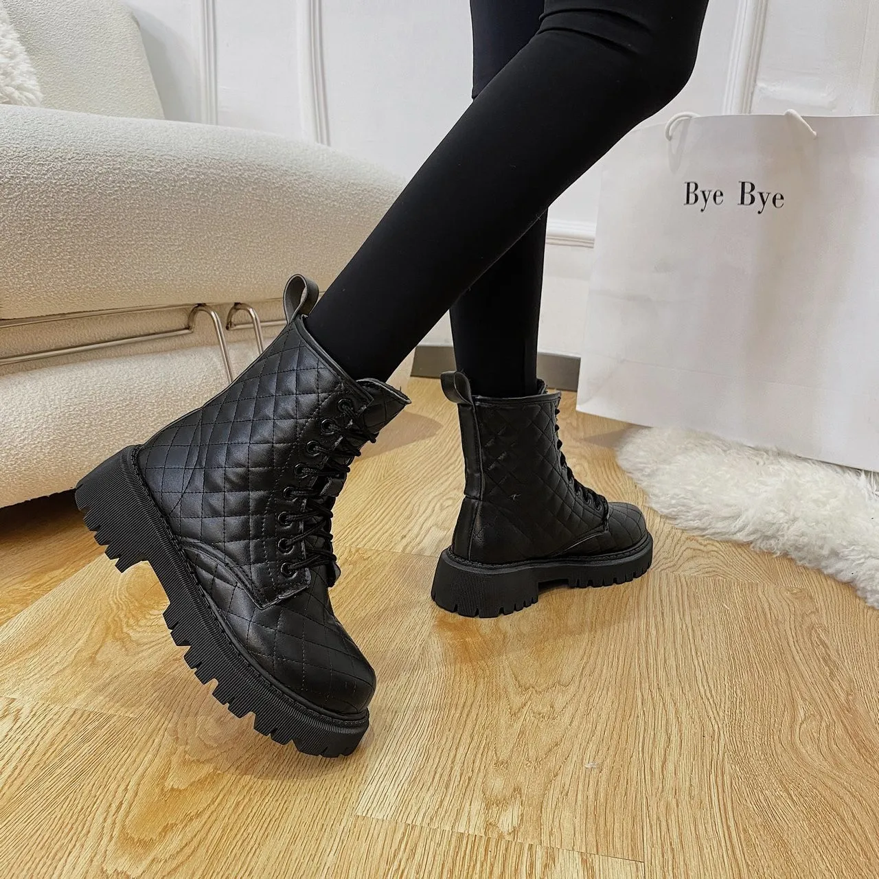 Новинка Зима 2021, ботильоны челси, ботинки на толстой подошве, на шнуровке, Готическая женская обувь, теплая спортивная мотоциклетная обувь из искусственной кожи на среднем каблуке