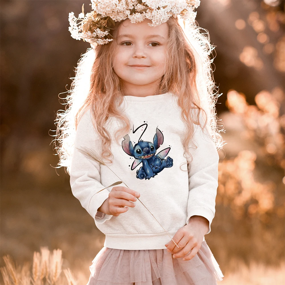Детский свитер с принтом Creativity Lilo Stitch, удобные топы Disney Kawaii, одежда, новый продукт, детский пуловер с круглым вырезом, хит продаж