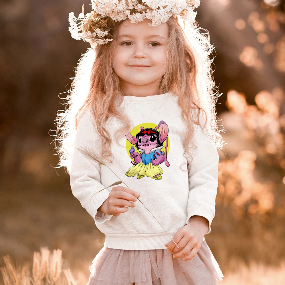 Детский свитшот с принтом Стич и кукла, белая детская толстовка с н...