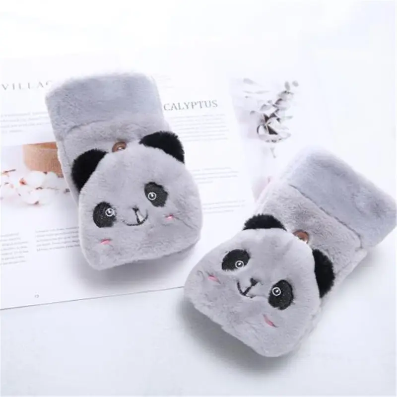 Модные женские плюшевые теплые перчатки варежки с мехом кролика кошки откидные перчатки без пальцев Мягкие плотные перчатки для девочек гибкие зимние полупальцы