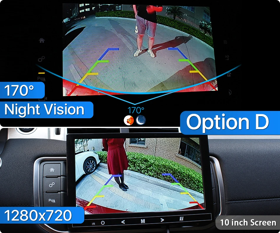 • Не нужны интерфейсы CANBUS или OBD, встроенный модуль треков заднего хода камеры, просто подключите питание.• Не поддерживает управление рулевым колесом.• Отрегулируйте трек автоматически в соответствии с движущимся положением и скоростью кузова и угла, что поможет вам облегчить парковку.• Широкий угол обзора 155 °.