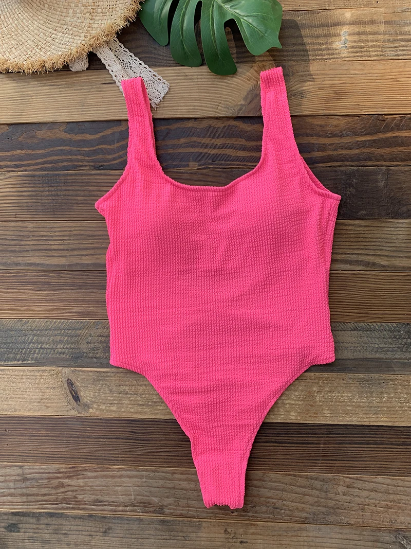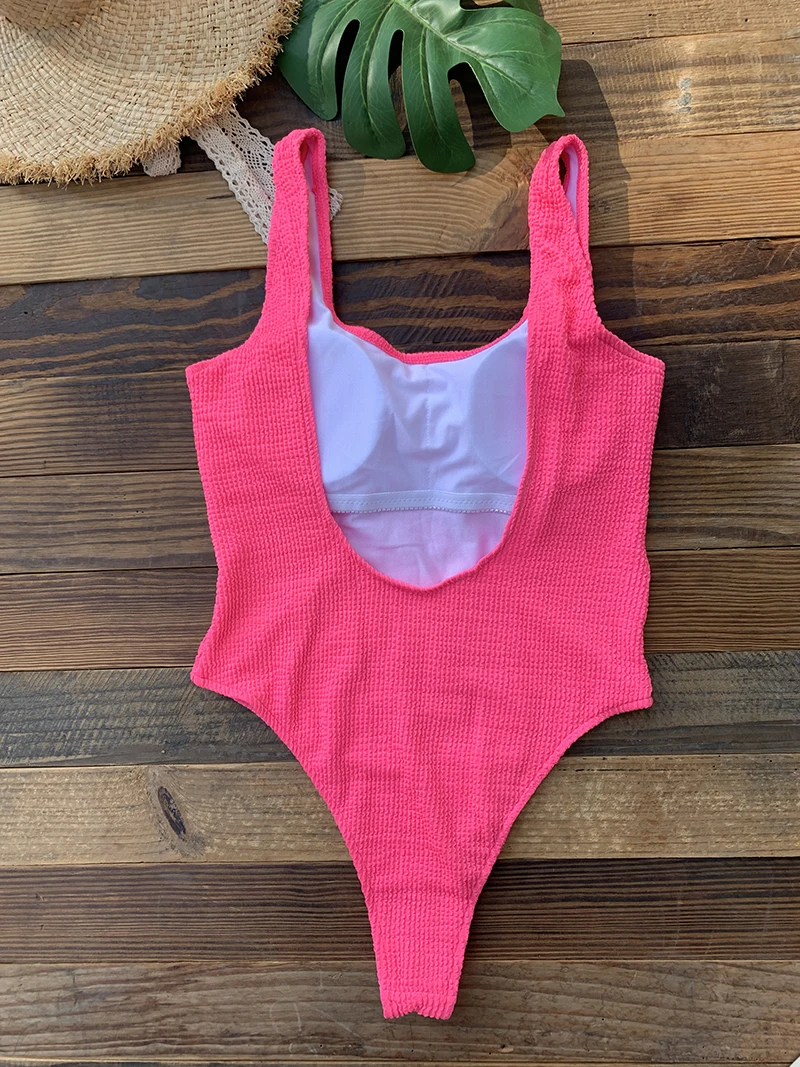 Новинка 2022, винтажный слитный купальник, женский сексуальный однотонный монокини с широкими бретелями, купальник с пуш-ап, неоновый купальный костюм для женщин