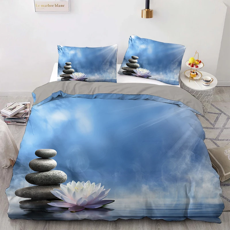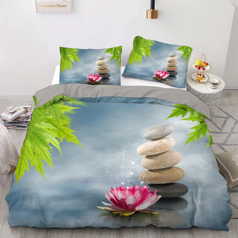 Постельное белье из зеленого бамбука с изображением водной лилии и лотоса, Комплект постельного белья с одеялом и пододеяльником для садового ландшафта, Комплект постельного белья для двуспальной кровати