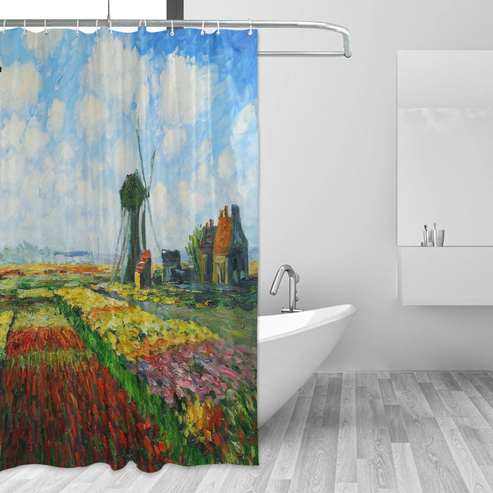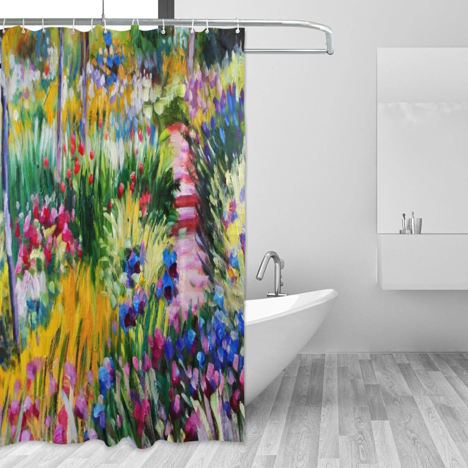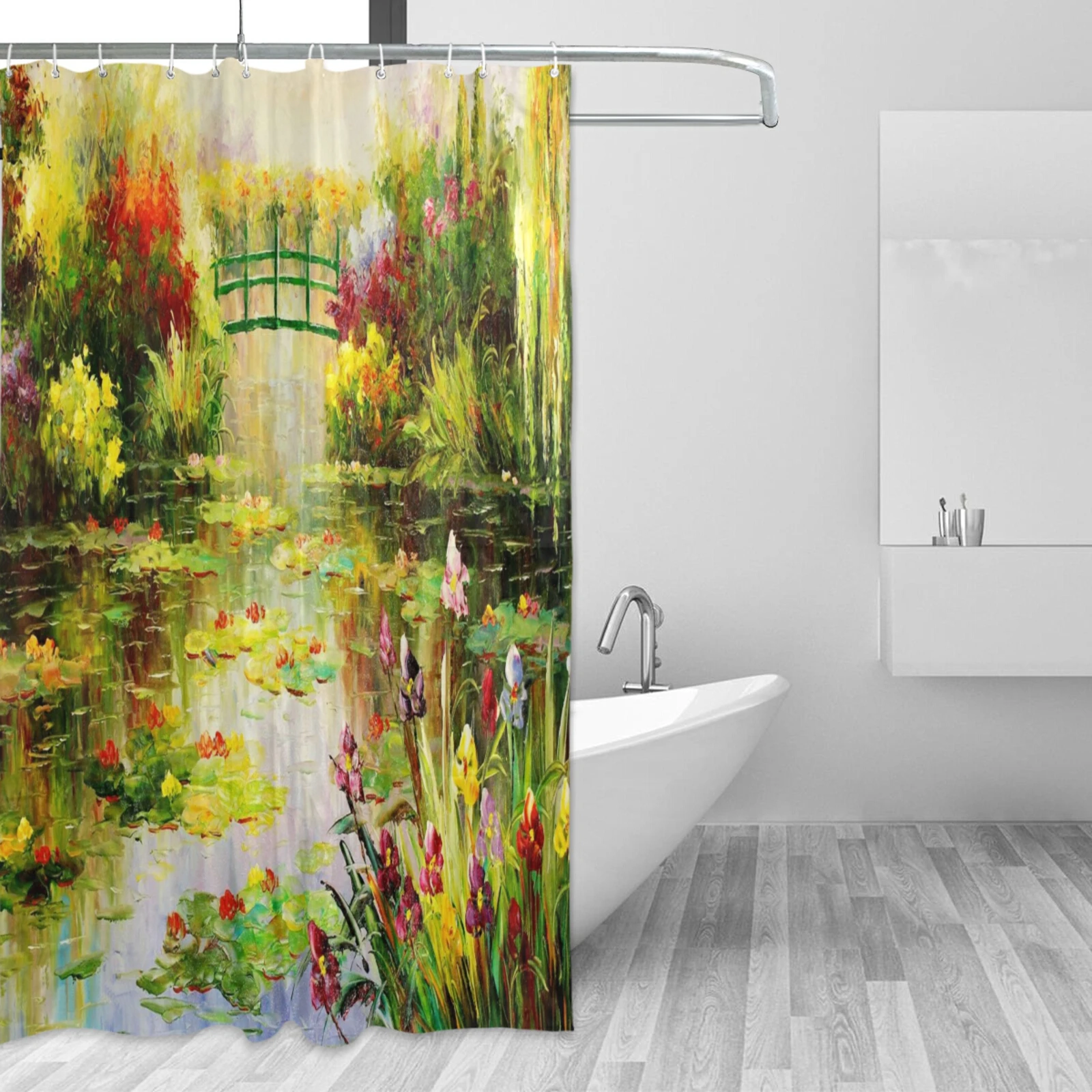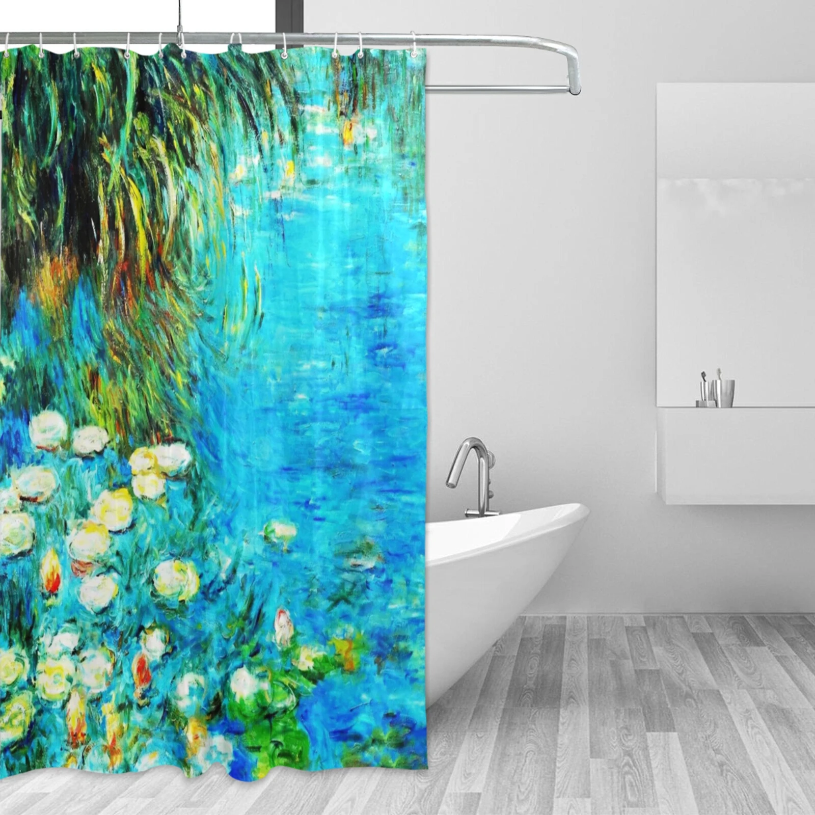 Декоративная Водонепроницаемая занавеска для душа для ванной комнаты, занавеска для ванной из 100% полиэстера с картиной маслом Клода Моне, экран для ванной с 12 крючками