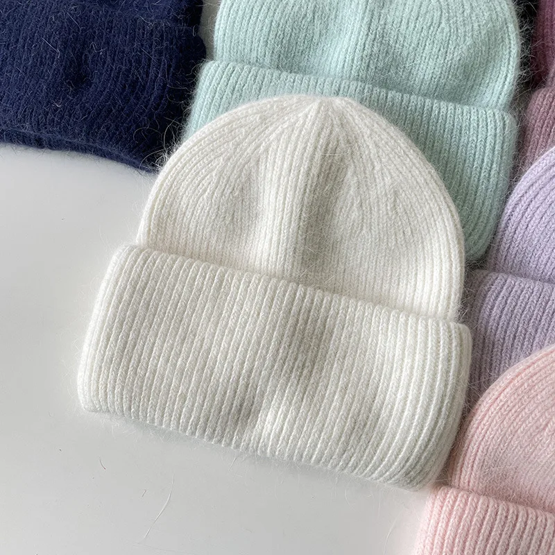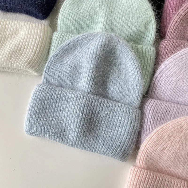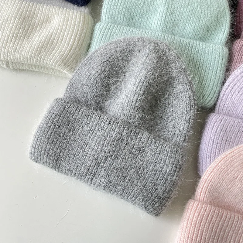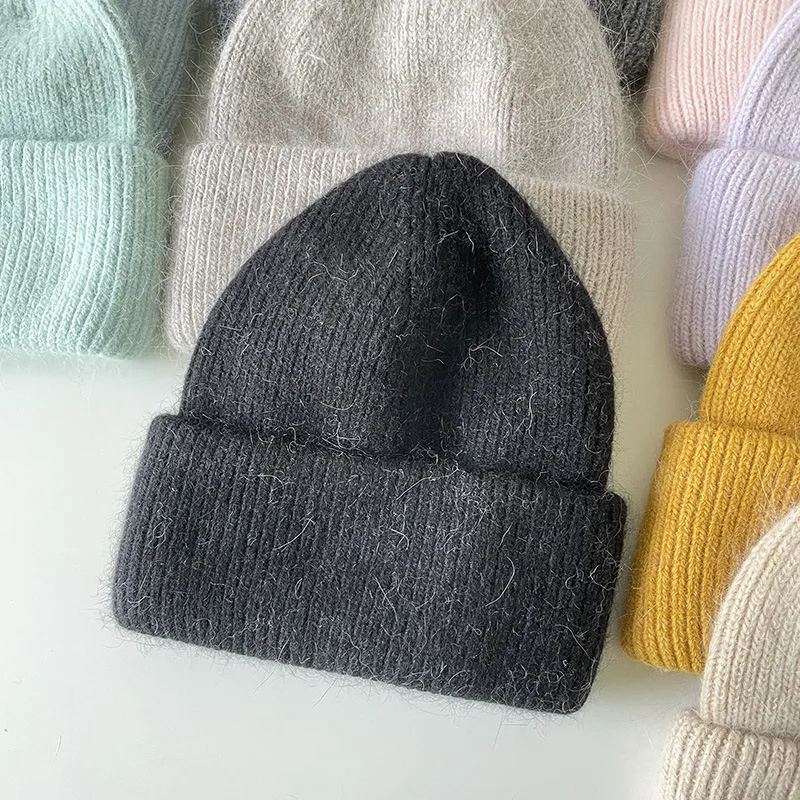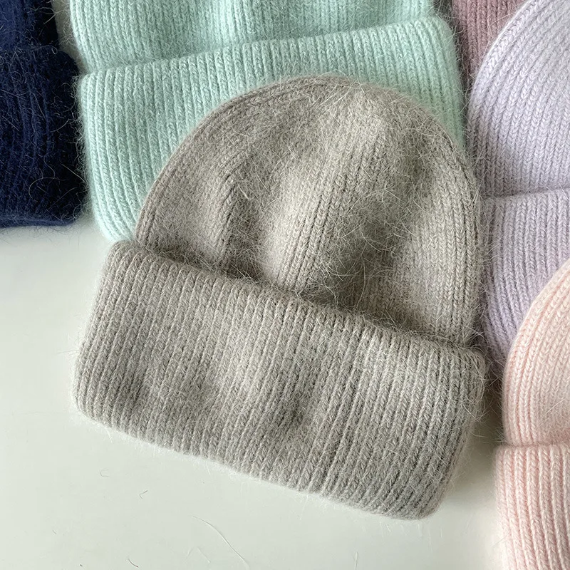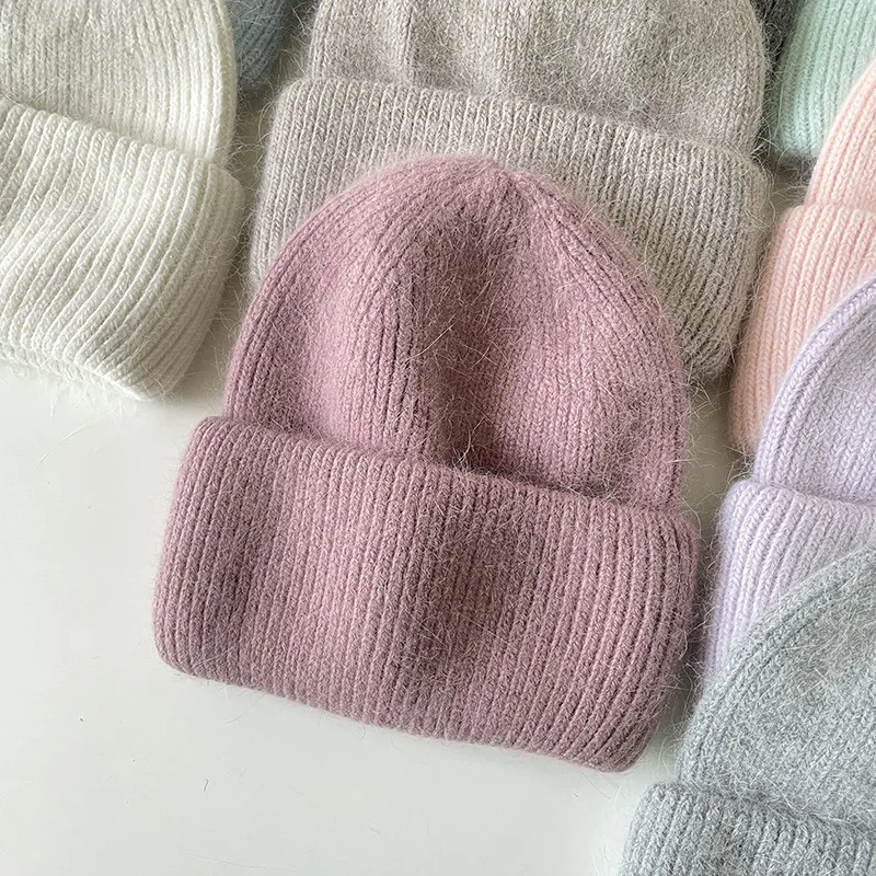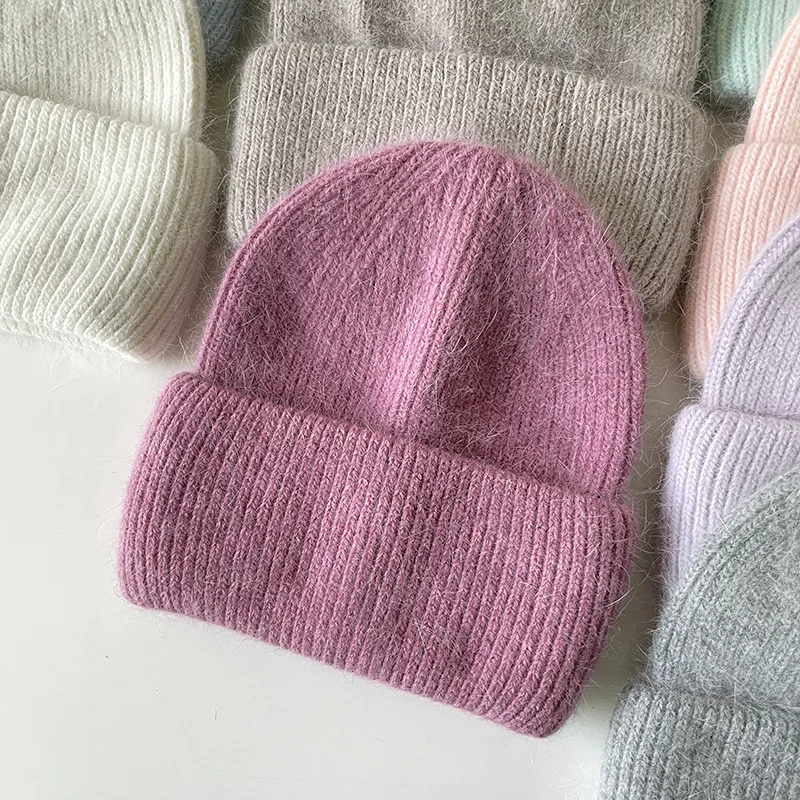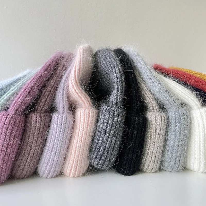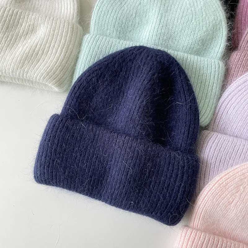 Женская шапка Beani из кроличьего меха, Ангорская Вязаная Мягкая теплая пушистая зимняя шапка, женская шапка, женская вязаная шапка