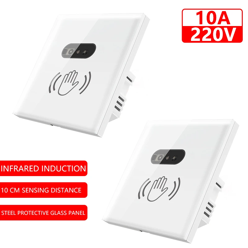 Умный настенный сенсорный выключатель света, 220 В, 10 А, сенсорный экран со стеклянной панелью без касания, европейский стандарт, инфракрасный переключатель