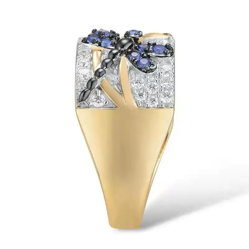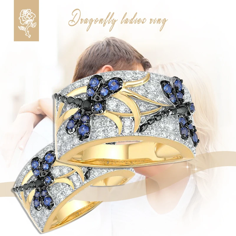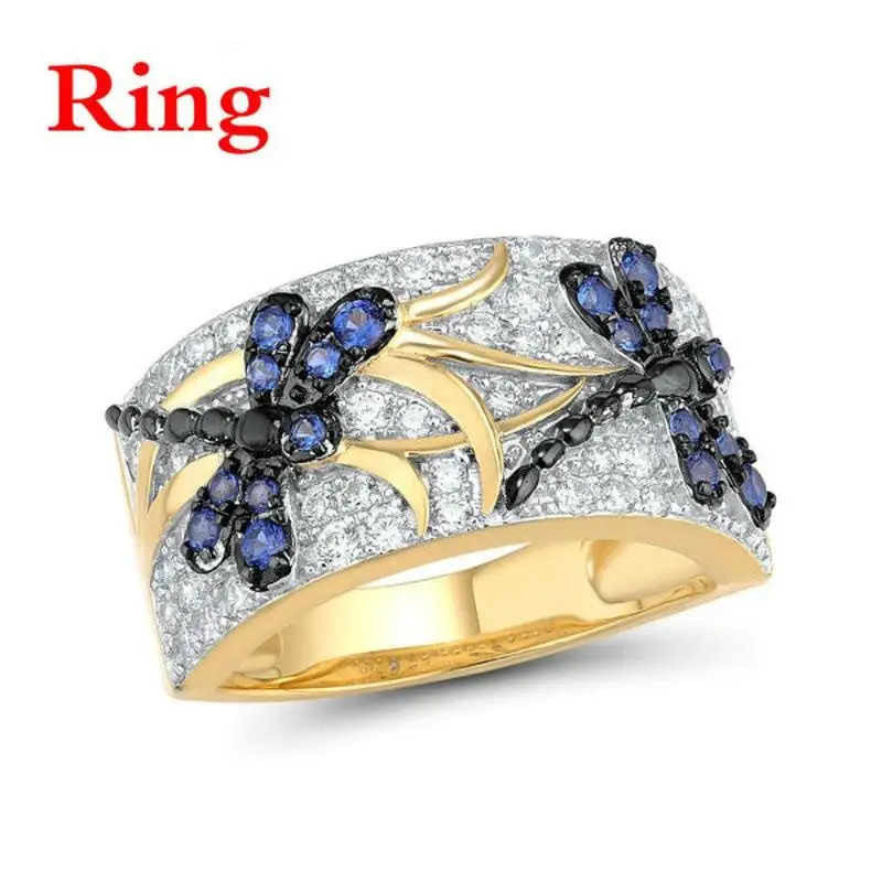 кольца 2021 тренд Женское золотое кольцо с кристаллами и стрекозой