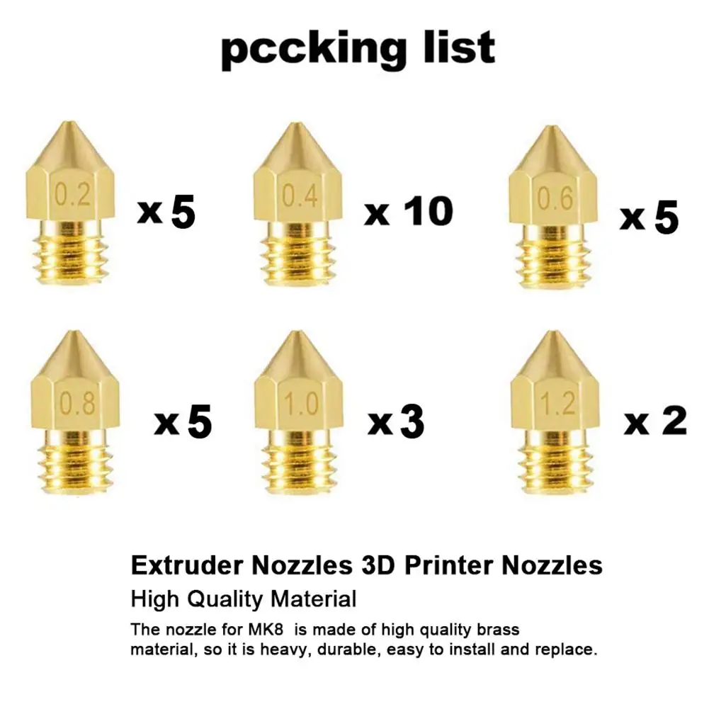 Латунная насадка MK8 для экструдера, 0,20,40,60,81,0 мм, 30 шт.