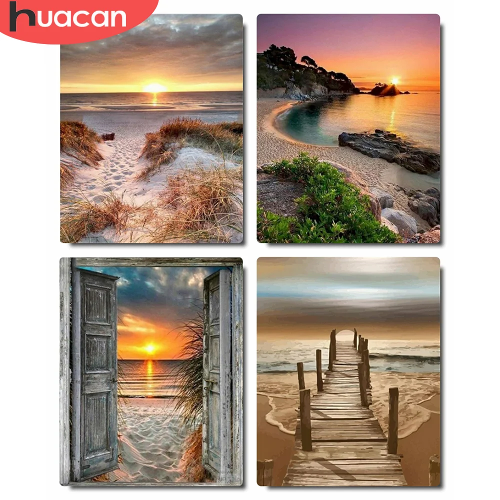 Картина маслом по номерам HUACAN, уникальный подарок для рисования на море и море, пейзаж, украшение детской комнаты