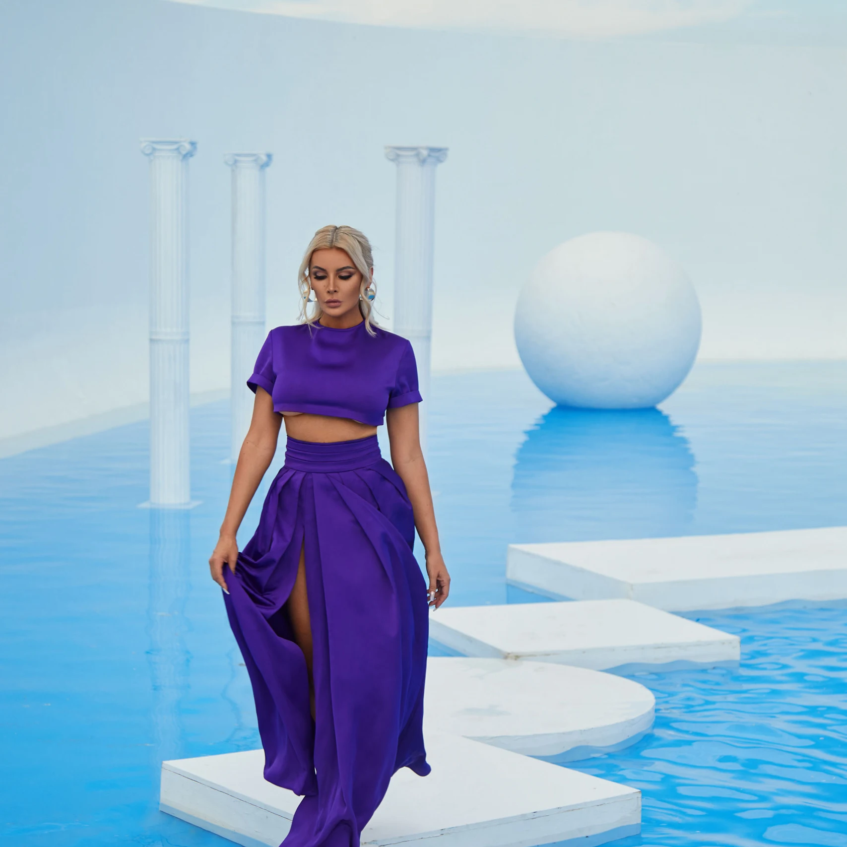 Ассиметричные фиолетовые атласные юбки, женские юбки с высокой талией и разрезом, юбки для фотосессии, продаются только без топа