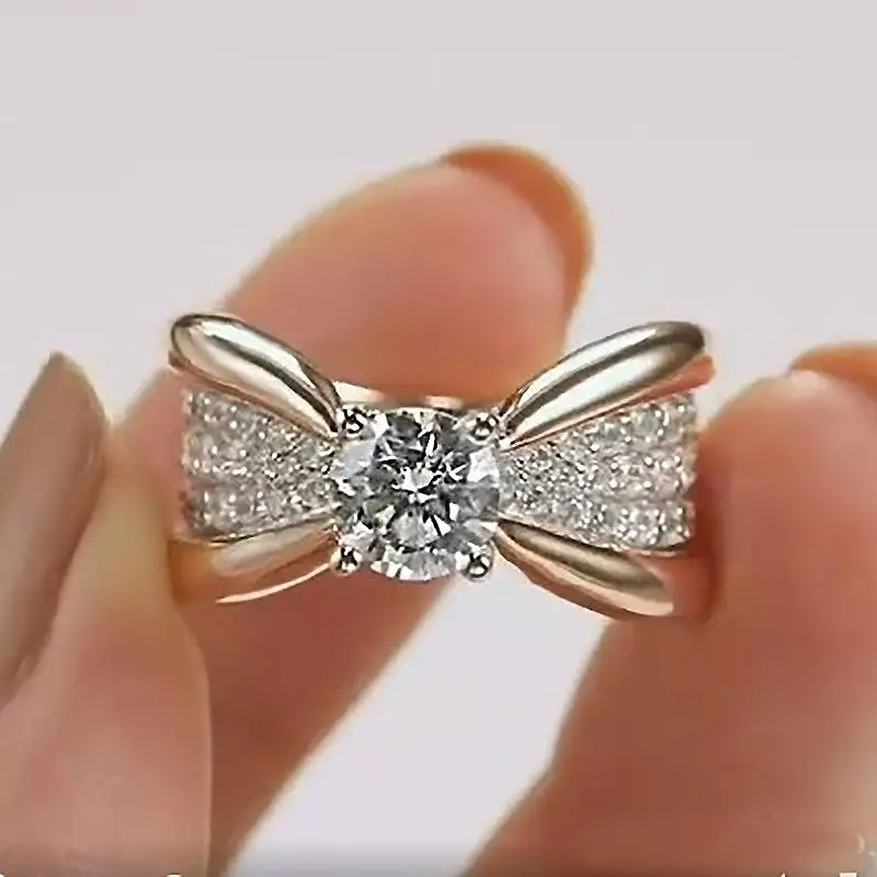 Розовое золото инкрустированный циркон цветок дамы кольцо Мода и элегантный европейский и амер...