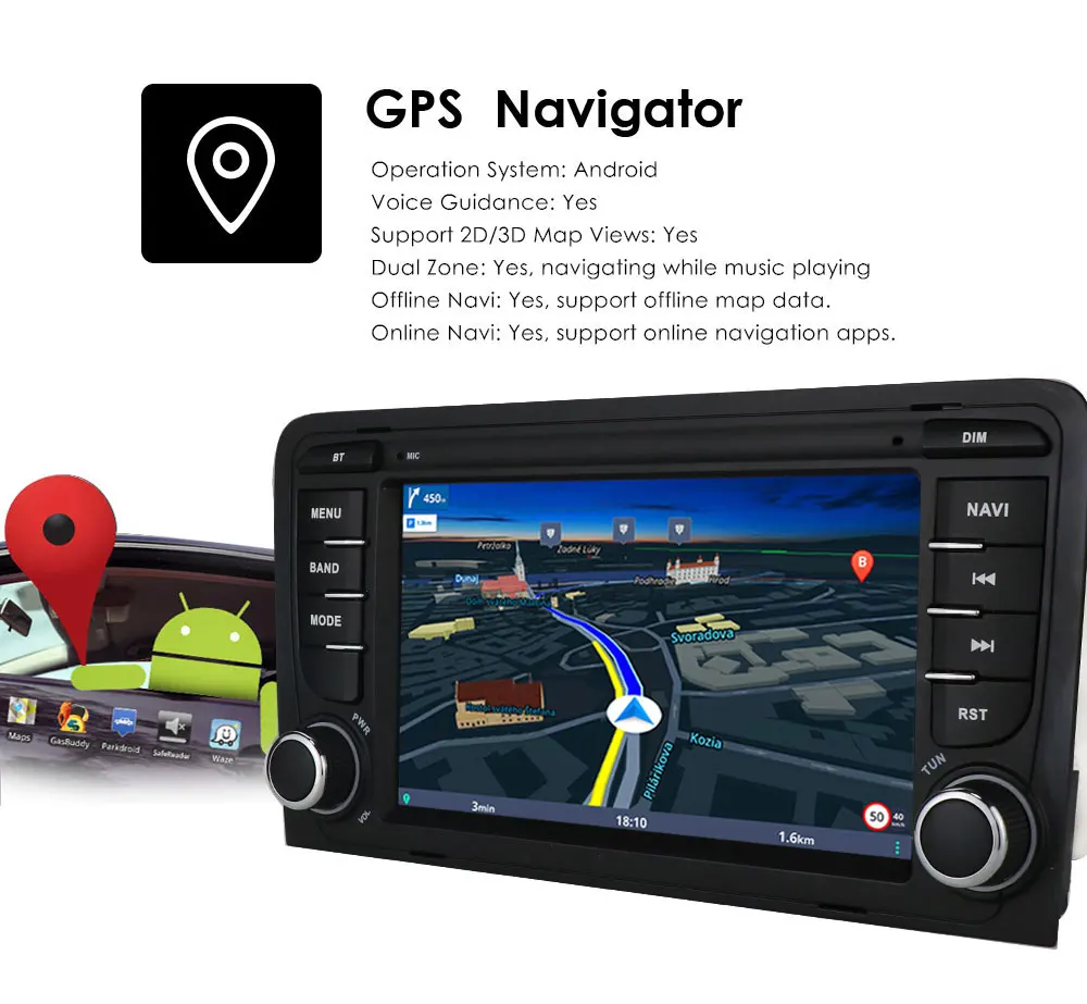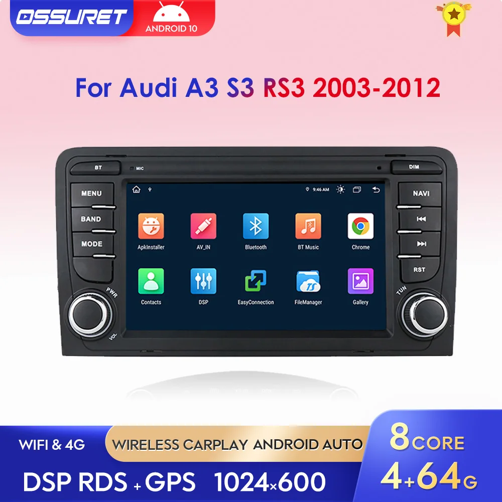 Автомагнитола на Android, 7-дюймовый мультимедийный видеоплеер с GPS, Wi-Fi, 4G, LTE, для Audi A3, S3, RS3, 2003-2012 гг.