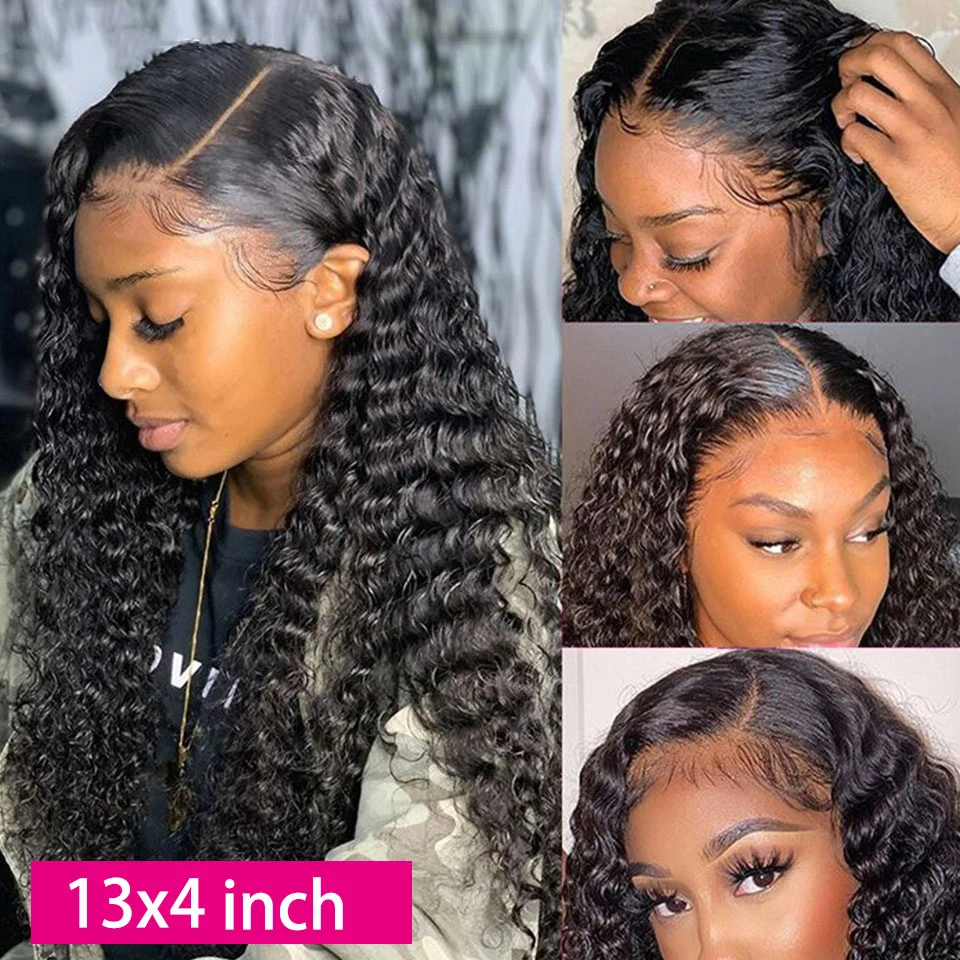 Парик из натуральных вьющихся человеческих волос, 2830 дюймов, бразильские, с глубокой волной, 13x 4, на сетке спереди, 180% для черных женщин, парик на 4x4