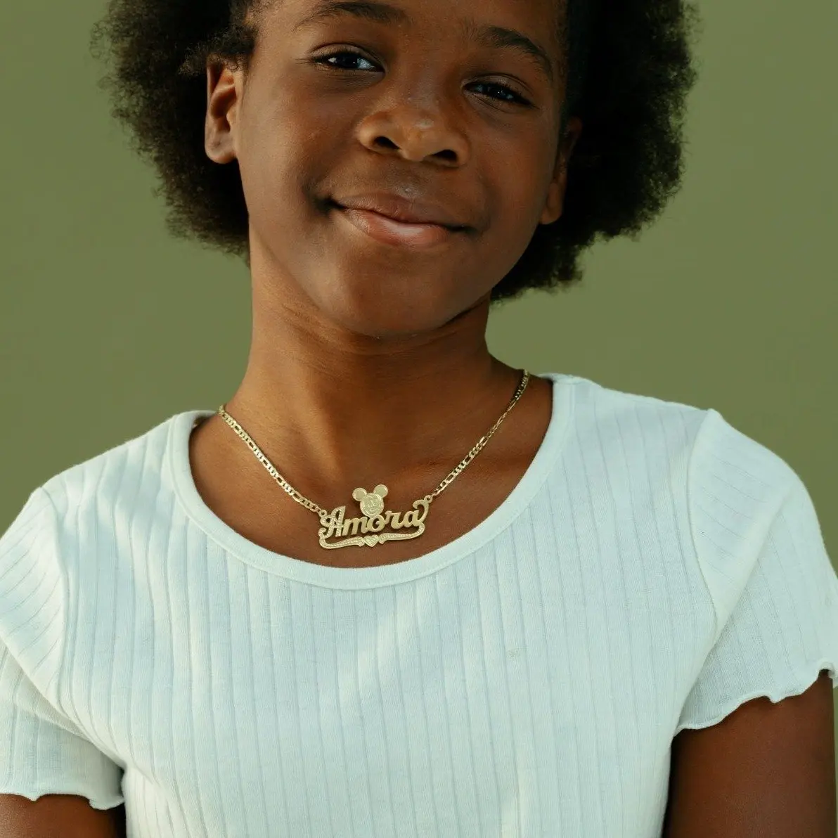 Детское ожерелье с именем из мультфильма на заказ, двухцветное ожерелье, подвеска из 18-каратного золота, Детская бижутерия, рождественский подарок