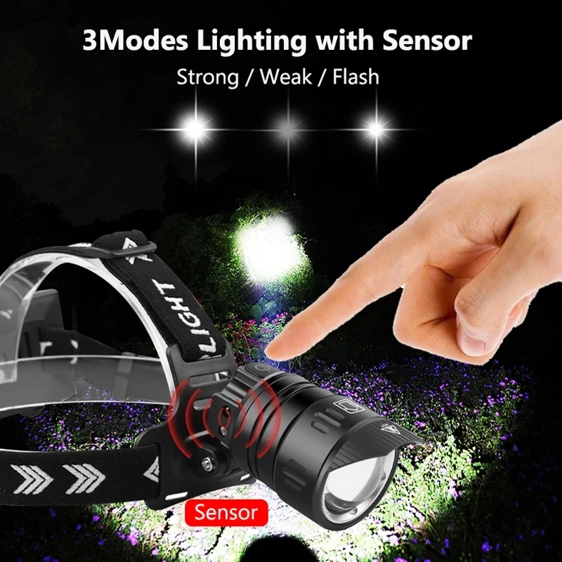 Мощный фонарь для рыбалки и светодиодный фонарь высокой мощности с датчиком фары фонарь для кемпинга 18650 Аккумулятор для охоты