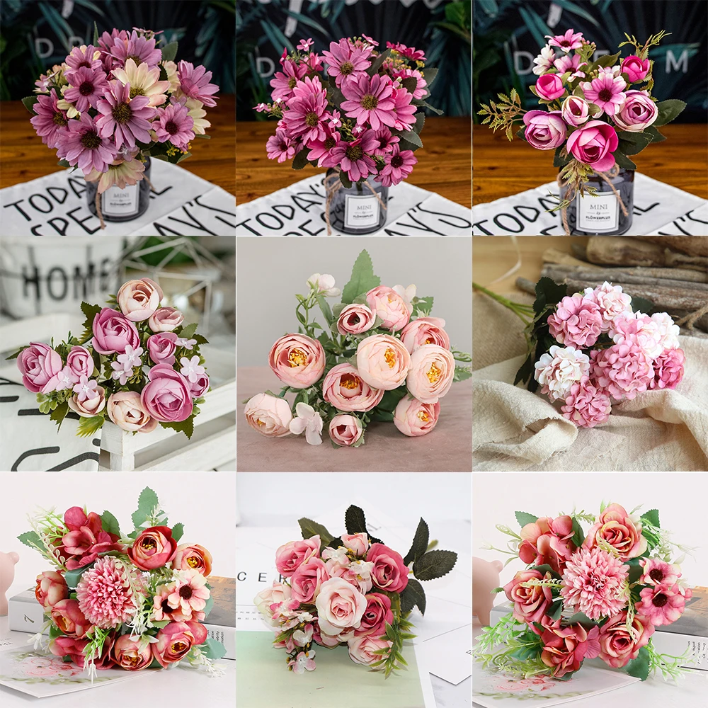 1 шт., роза, красные искусственные цветы, пион, чайная роза, осенняя искусственная Роза для самостоятельного украшения гостиной, дома, сада, свадьбы