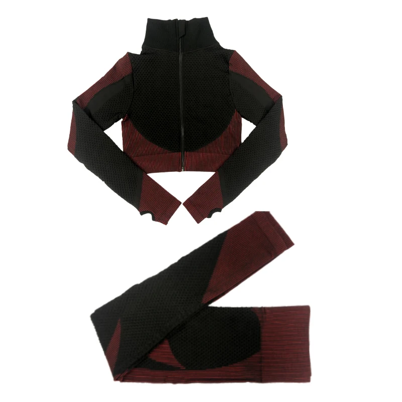 Бесшовный дышащий Быстросохнущий тренировочный костюм для йоги с длинным рукавом в полоску для йоги бесшовный комплект из 2 предметов для тренировок