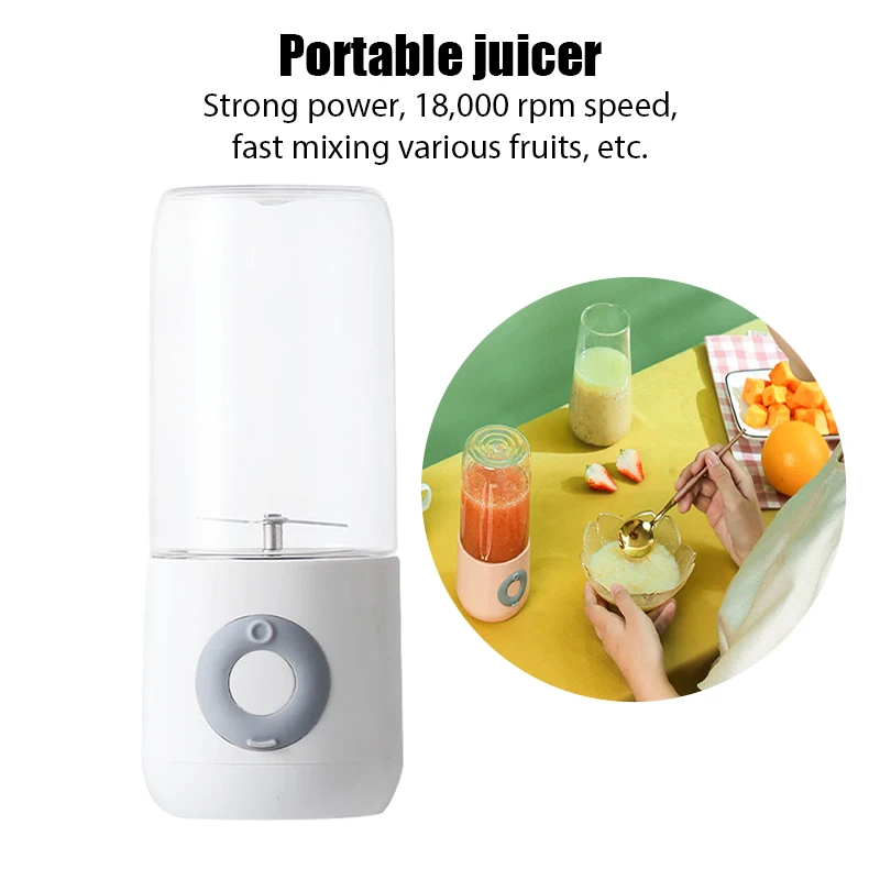Сильная мощность-нагрузка 18000 об/мин скорость, вы можете быстро размешать различные фрукты, фруктовый сок, соевое молоко, молочный коктейль, рисовая паста (вы можете легко разбивать кубики льда).Легко носить с собой-конструкция силиконового подъемного кольца позволяет брать бутылочку для сока в любое место, спорт, прогулки, на открытом воздухе, для пикника.С USB зарядной линией, в любое время, в любом месте можно заряжать, и больше не нужно беспокоиться о отсутствии электричества, дома, необходимости в путешествиях.Наш туристический блендер легко чистится, просто краску под водой после использования. (Примечание: Пожалуйста, не замачивайте основную машину в воде в течение длительного времени) только ручная стирка!Спецификация: