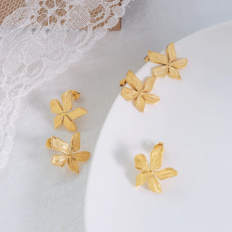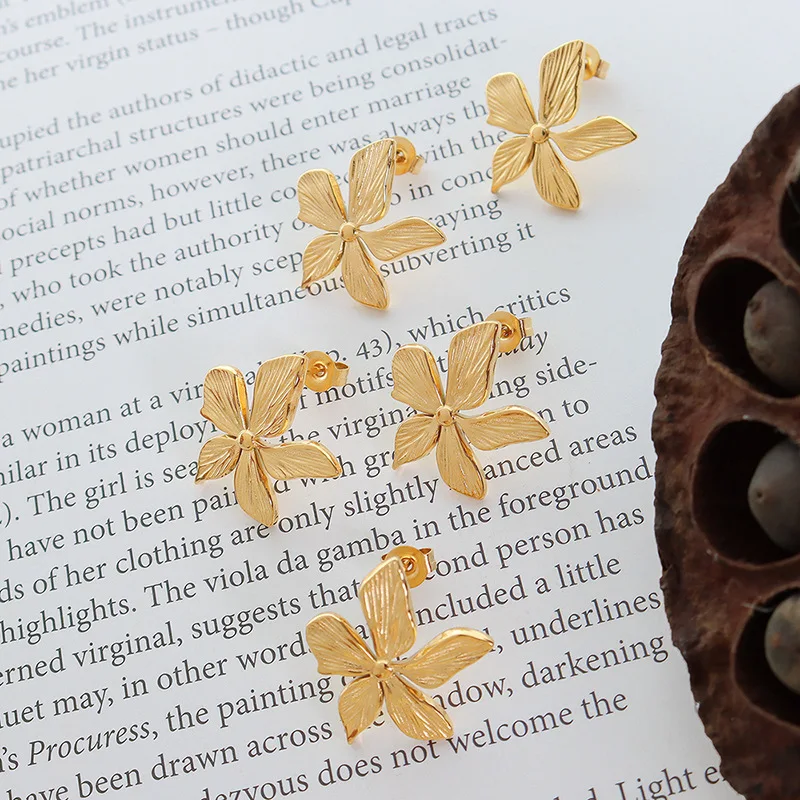 Серьги-гвоздики из нержавеющей стали с тиснением в виде цветка, 18 карат
