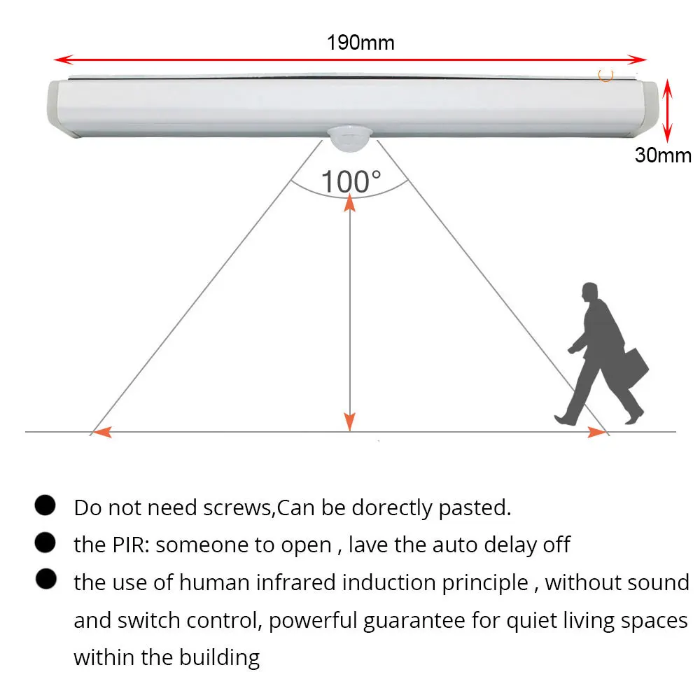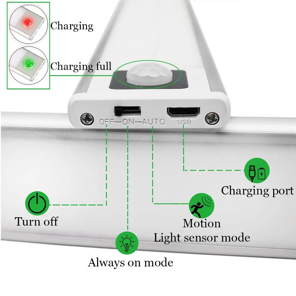 Новый светодиодный светильник для шкафа с пассивным ИК датчиком движения, светодиодный USB Перезаряжаемый черный алюминиевый светильник для кухонных шкафов, светодиодный светильник