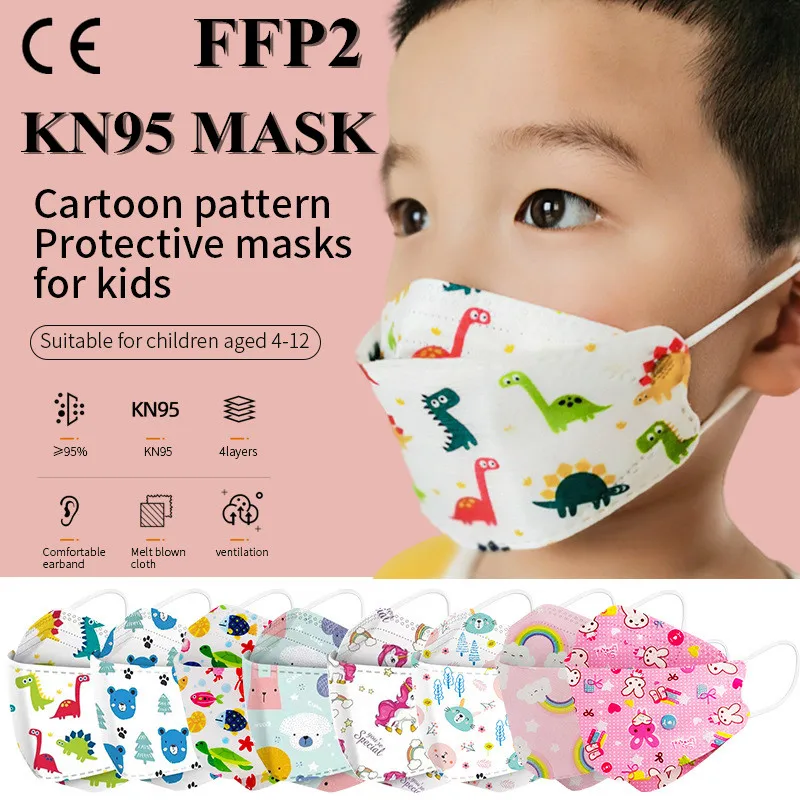 Детская 4d-маска для лица KN95, 4-слойная многоцветная FFP2 CE маска для девочек и мальчиков, респиратор, защитные пылезащитные Детские маски