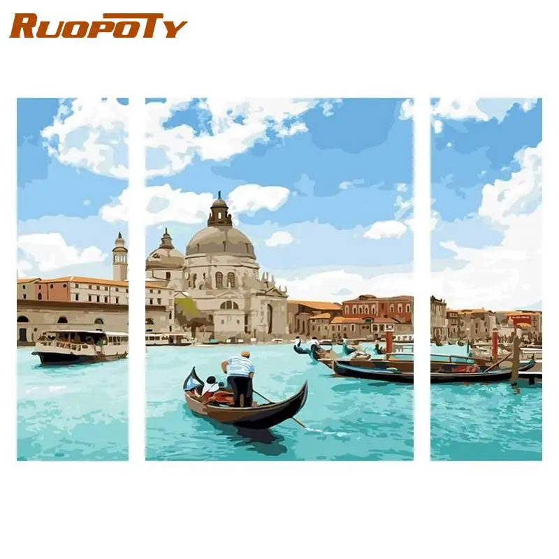 RUOPOTY 3 шт.компл. картина по номерам Венеция Пейзаж Рисование Раскрашивание по номерам Акриловая краска Diy подарок ручная работа для домашнего декора