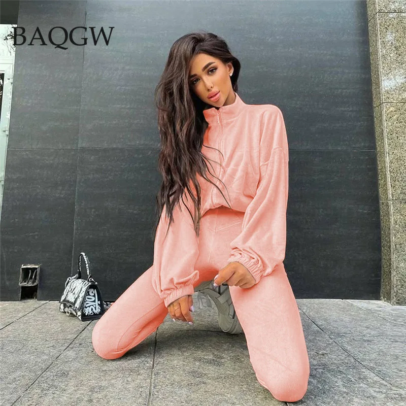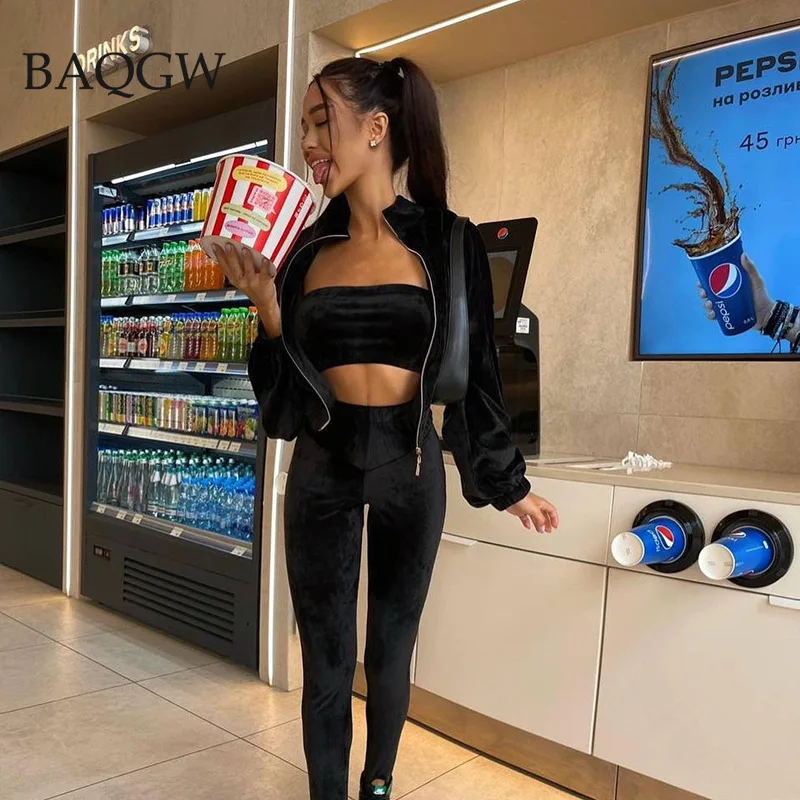 Женский велюровый спортивный костюм из трех предметов, однотонный Повседневный укороченный топ + пальто на молнии + леггинсы, Теплый Бархатный костюм большого размера 3XL