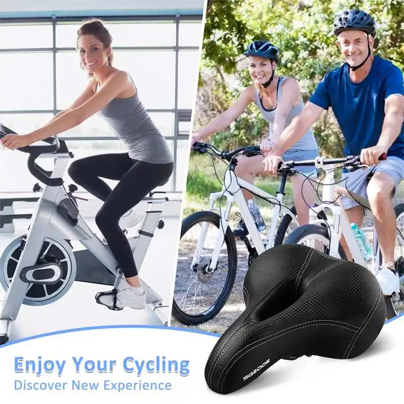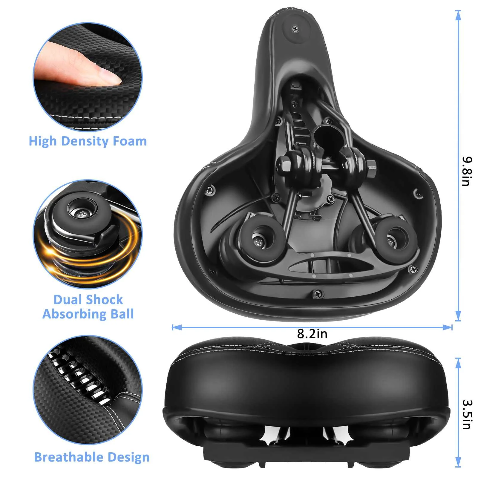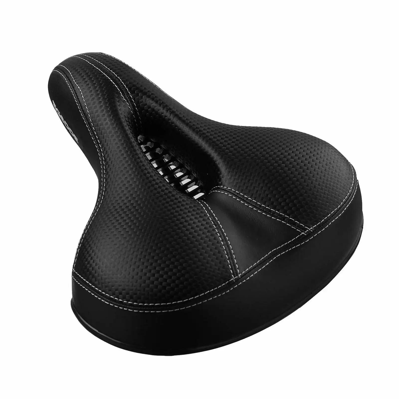 2. Двойная пружина подвески-Амортизация, помогает сгладить удары, лучший выбор для езды на дальние расстояния! Более того, это большое Велосипедное Сиденье имеет средний паз дышащего дизайна, вентилируемый, может уменьшить ощущение затхлости, всегда сохраняет прохладу и сухость, хорошо для личных частей!