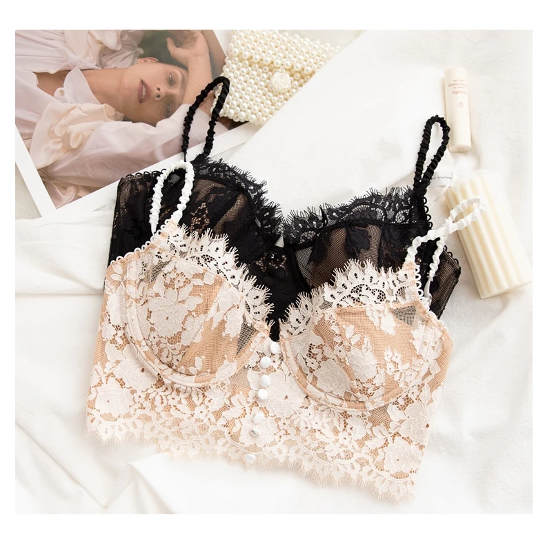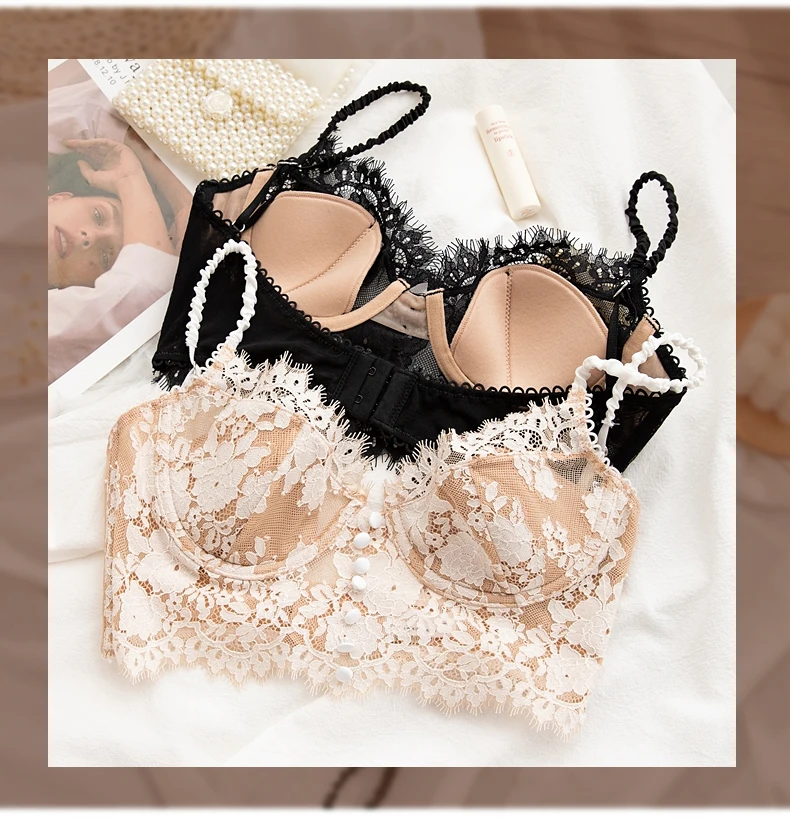 Новое женское сексуальное нижнее белье с открытой спиной, мягкий бюстгальтер, французский сетчатый бюстгальтер с цветочной вышивкой, женское нижнее белье
