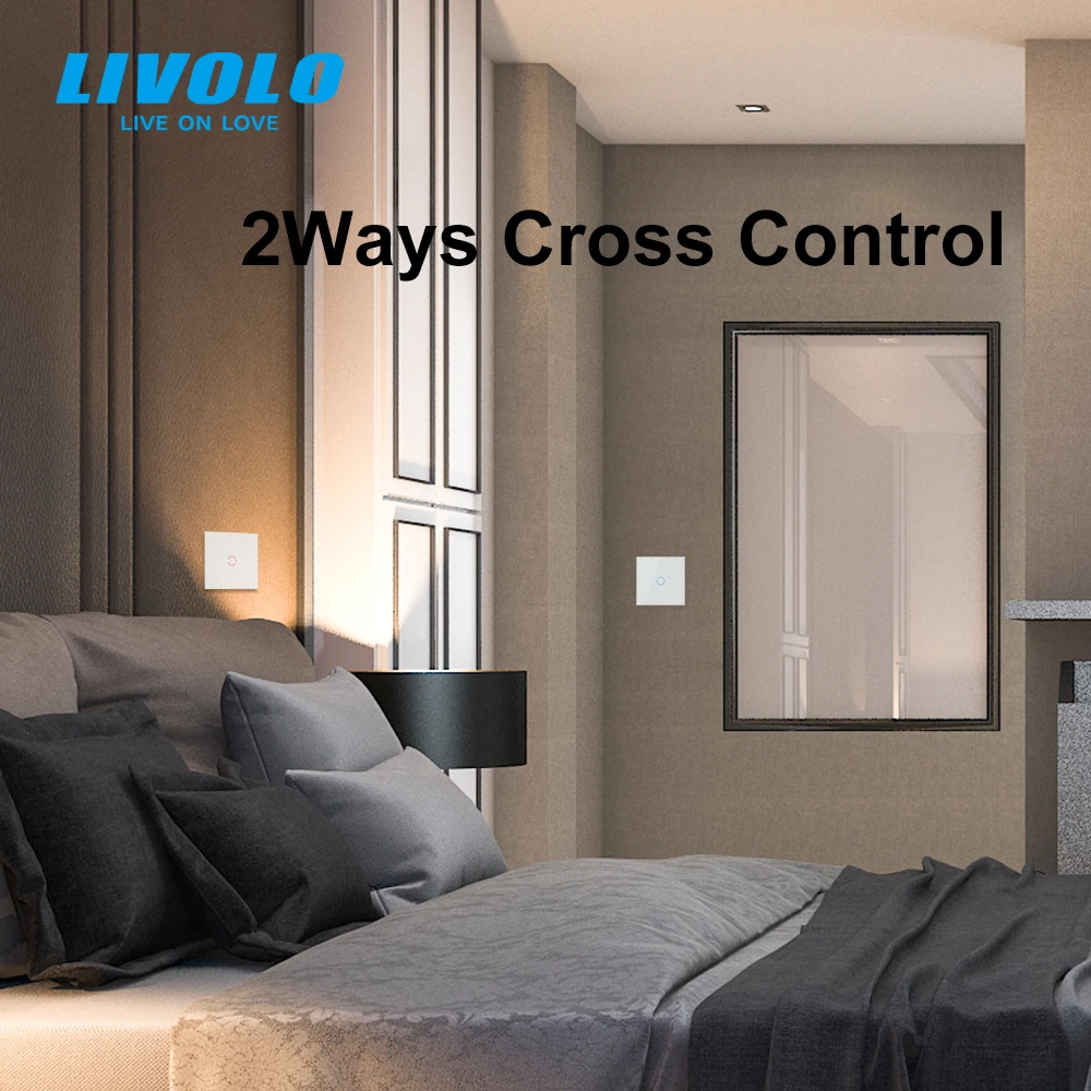 Настенный высветильник ель Livolo с сенсорным управлением, европейского стандарта, 1 клавиша, 2 канала, перекрестная лестница, панель из хрустального стекла, 5 А, дисплей светильник светкой