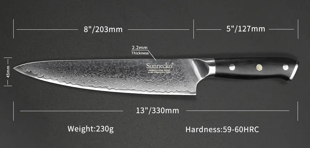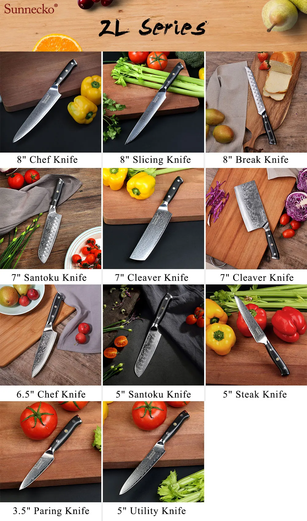 Кухонный профессиональный нож шеф-повара Sunnecko 8 дюймов, японское лезвие из стали VG10, ручка из дамасской стали с овощерезкой