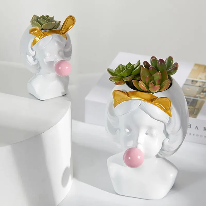 2021 скандинавские смолы ваза милая девушка голова человека жевательная резинка цветочный горшок современное искусство украшение цветок креативная кавайная ваза домашний декор