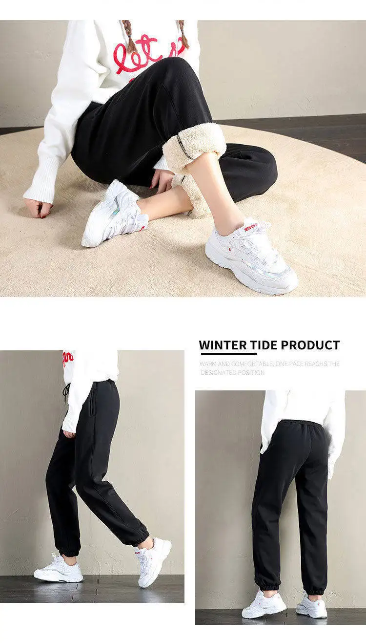 Зимние женские флисовые брюки 2021, однотонные плотные плюшевые теплые брюки, женские повседневные леггинсы на шнуровке для тренировок, свободные спортивные брюки