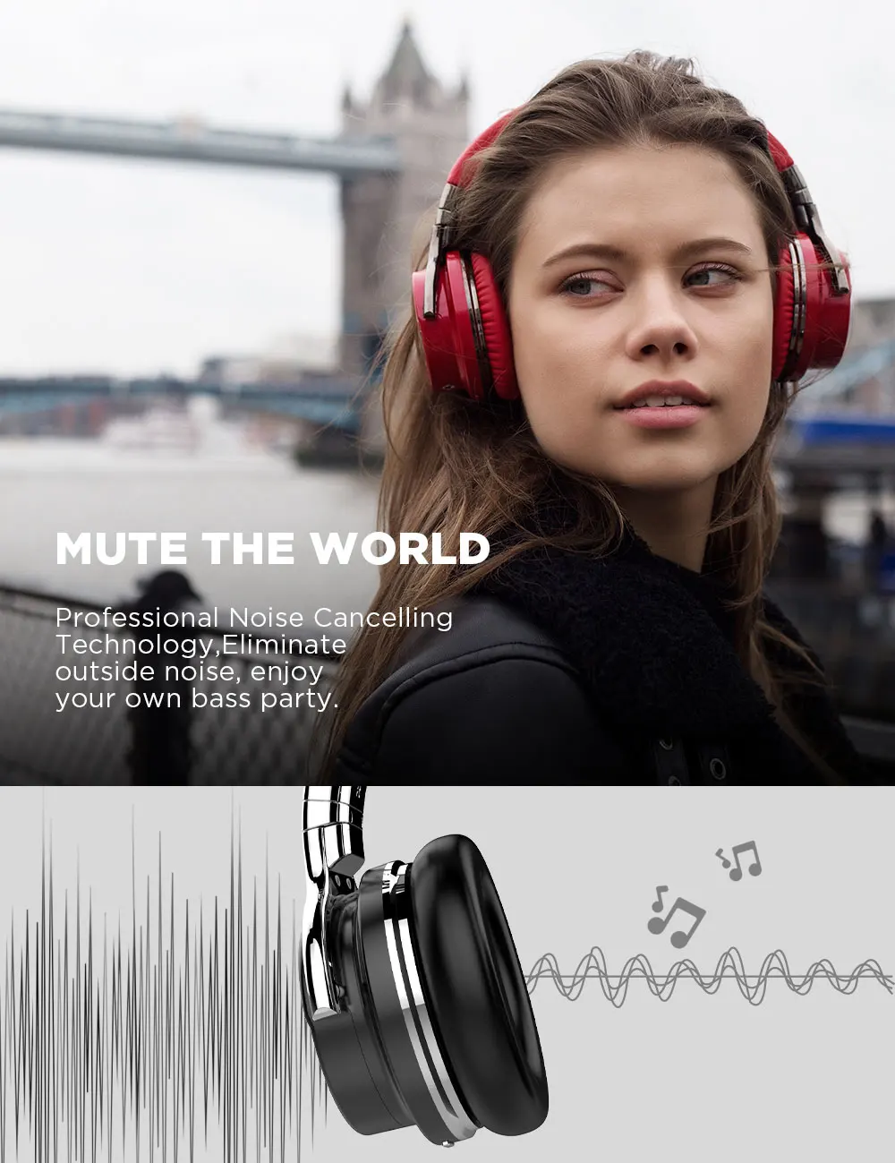 Respuesta de graves profunda y precisa. Los auriculares con cancelación activa de ruido alrededor de las orejas de COWIN te comprescionan un sonido nitido y potente que te ayuda a disfrutar mejor de tu Musica. El objetivo de ofrecer a los clientes una mejor calidad de sonido es nuestro objetivo constante.