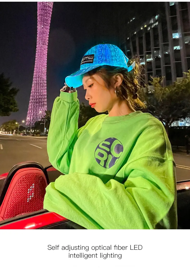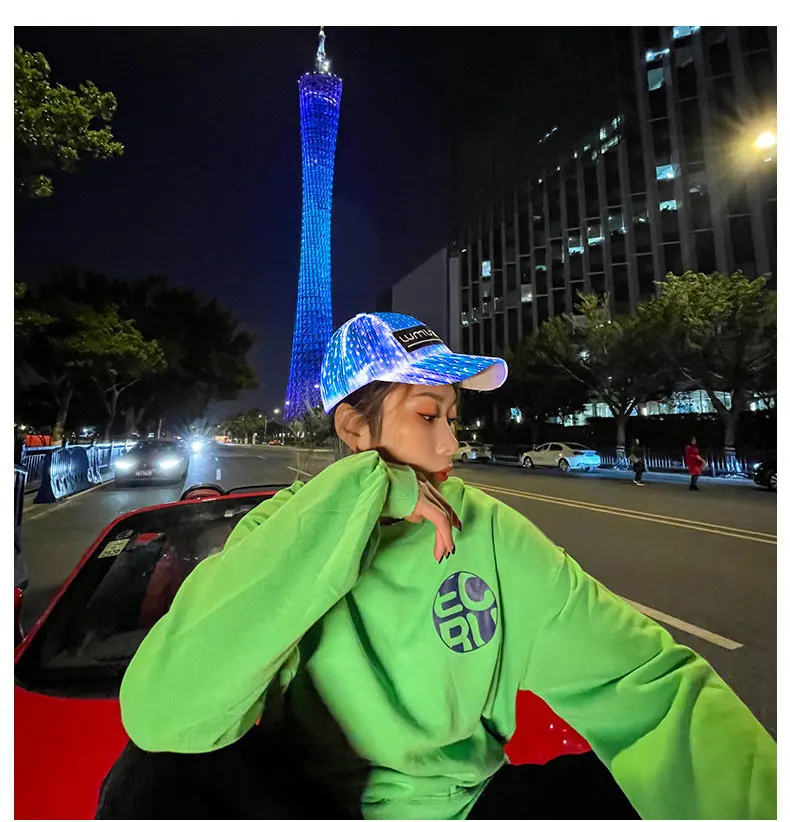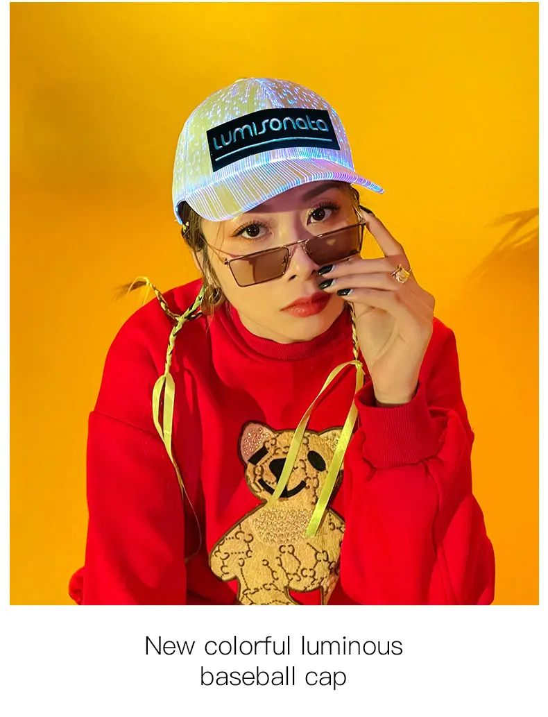 Бейсболка со светодиодной подсветкой из оптоволокна для женщин и му...