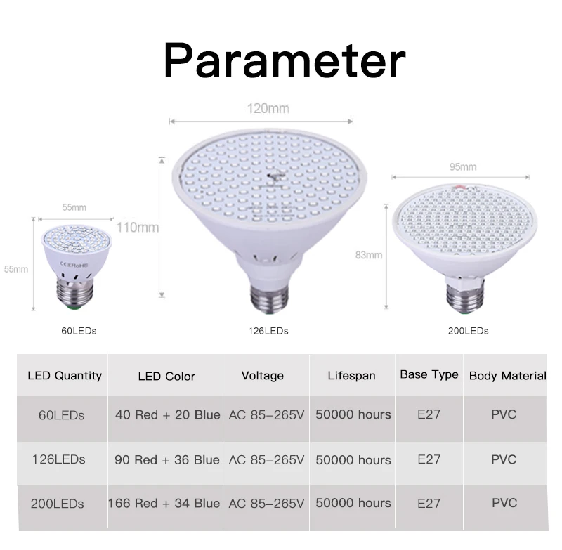 Светодиодная фитолампа для растений E27, лампа полного спектра для выращивания растений, садоводства, саженцев, саженцев