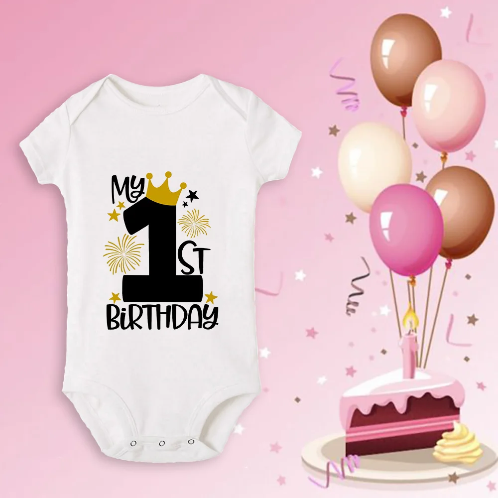 Комбинезон детский с коротким рукавом, с надписью My First Birthday...