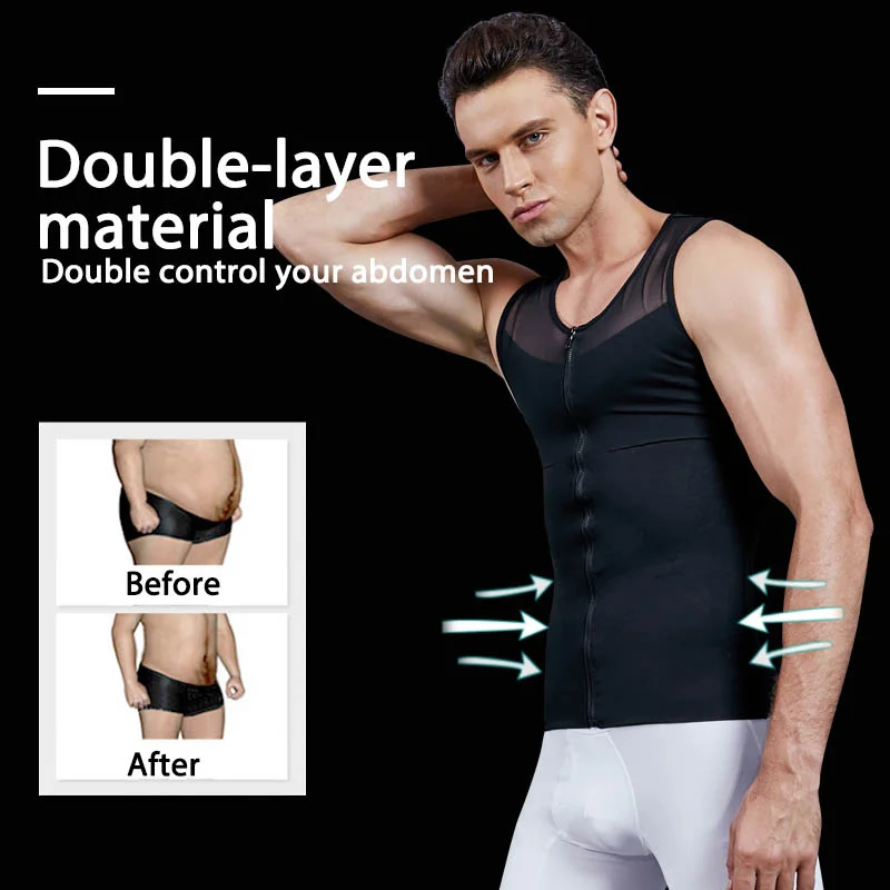 Мужской корсет для похудения на молнии, корсет, майка, утягивающий корсет для груди и живота, Корректор осанки, майка, Корректирующее белье для фитнеса