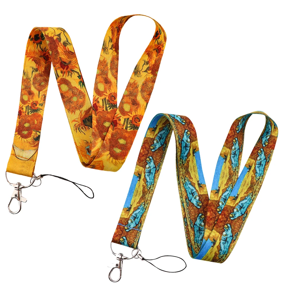 ER1602 Van Gogh Подсолнухи Картина маслом Id Бейдж держатель Брелок ID карта пропуск для тренажерного зала мобильный бейдж держатель ремешок брелок для ключей