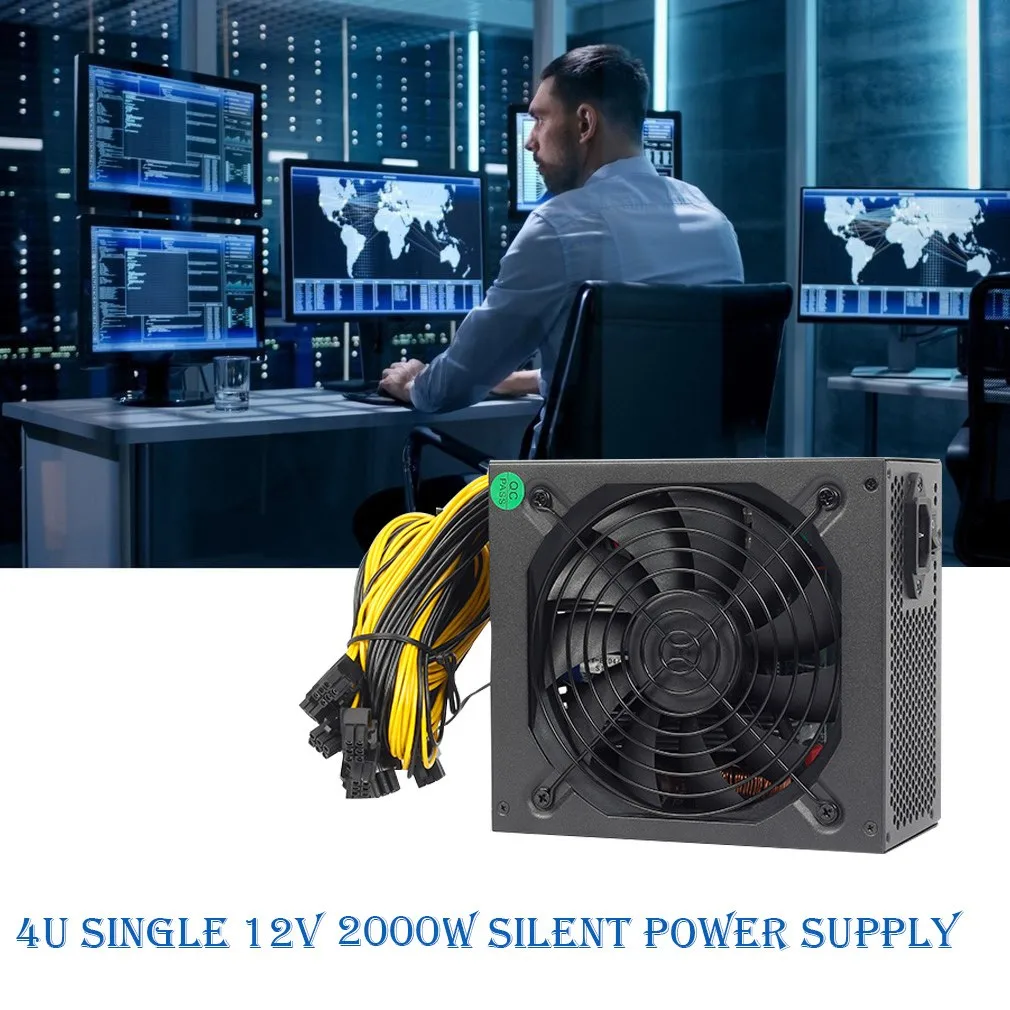 Блок питания для майнинга ETH Bitcoin 2000 Вт, 2400 Вт, 2600 КПД, поддержка 6 карт дисплея, графический процессор для майнинга, установка для майнинга