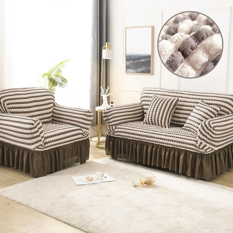 Чехол для дивана жаккардовый эластичный с юбкой, для гостиной
