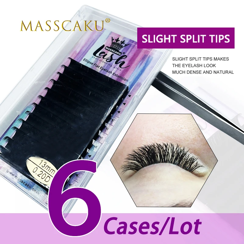 MASSCAKU 6 Чехлы/лот супер мягкие матовые отдельные ресницы 0,15 0,20 Толщина Корея, ПБТ материалы в виде плоского эллипса наращивание ресниц