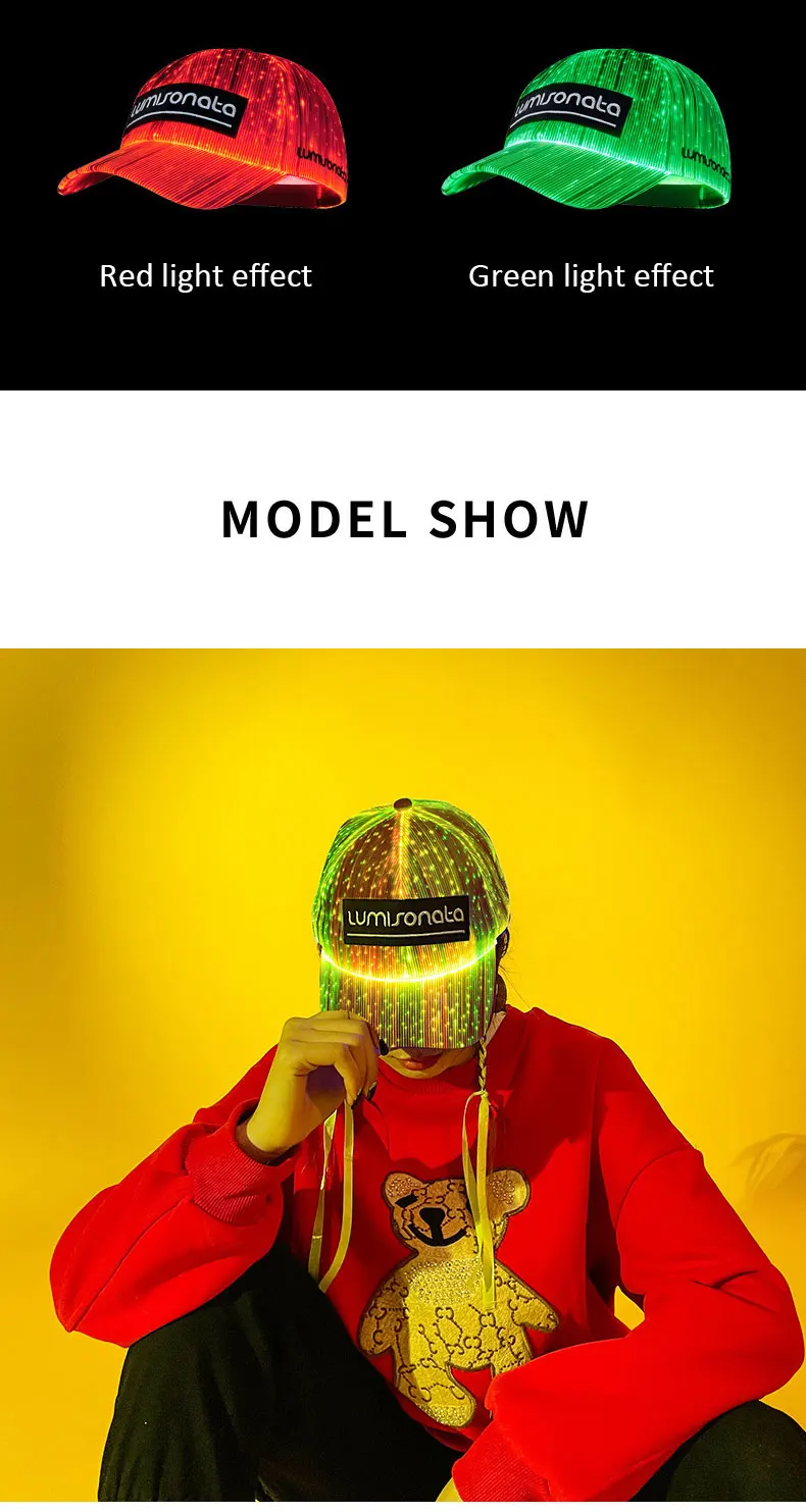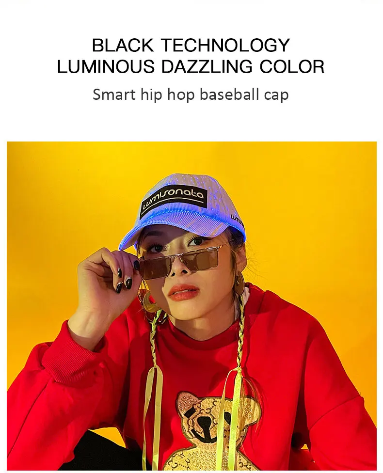 Бейсболка со светодиодной подсветкой из оптоволокна для женщин и му...