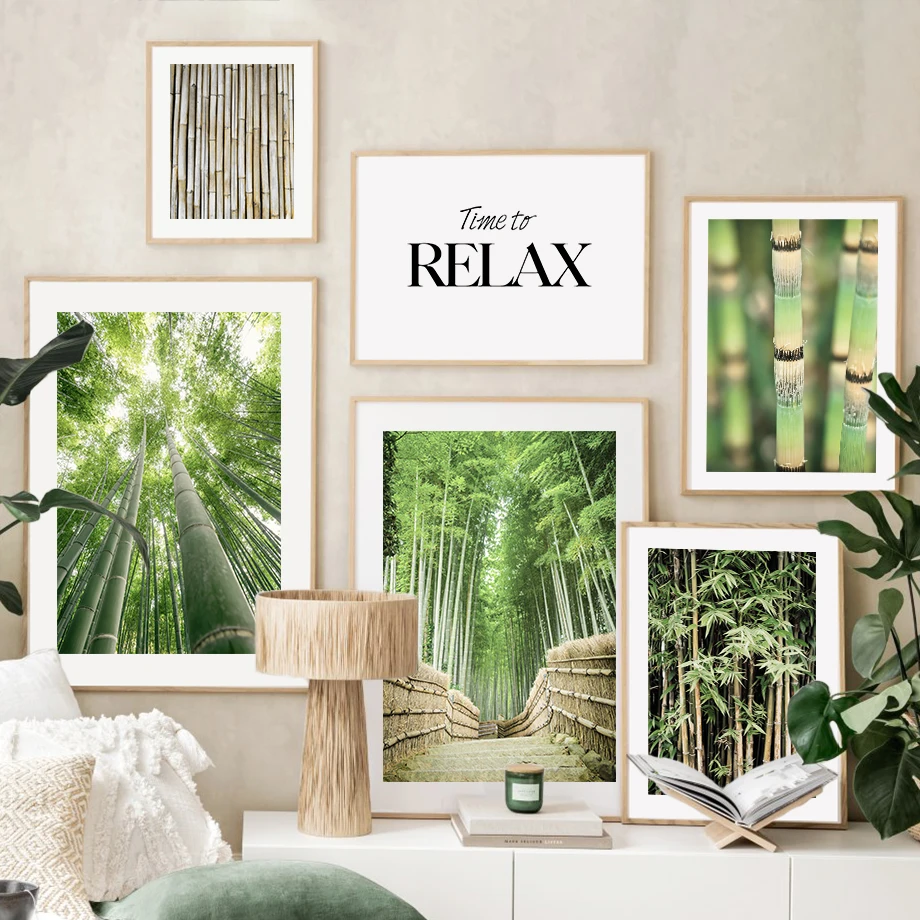 Картина на холсте из зеленого бамбука, дзен-камня, настенное искусс...