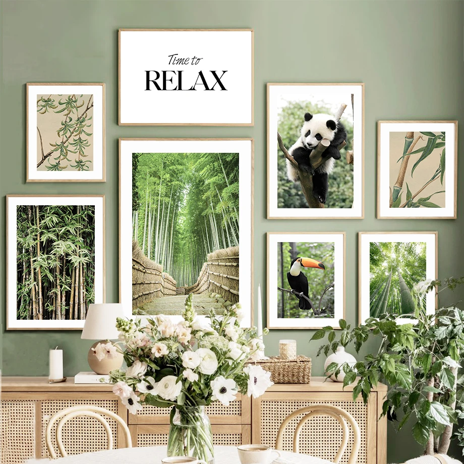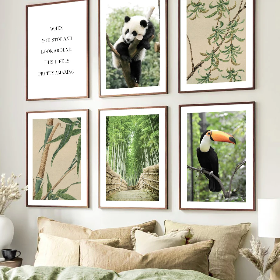Бамбуковый лес панда Тукан цитаты настенное Искусство Холст скандин...