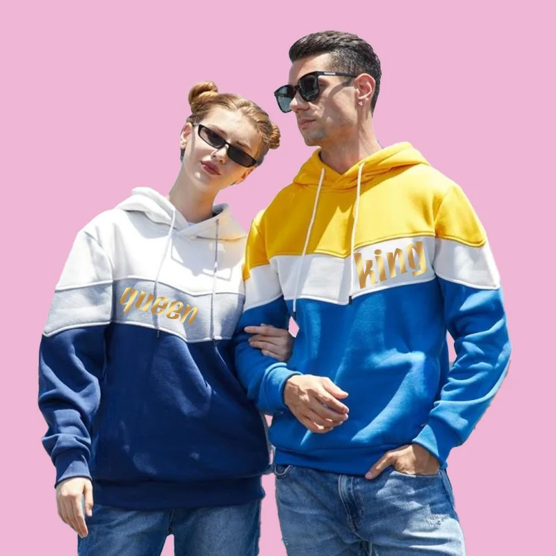 Парная Спортивная толстовка с капюшоном с принтом король или королева, мужской и женский топ для пары, повседневные свободные свитшоты в стиле хип-хоп составного кроя 2021