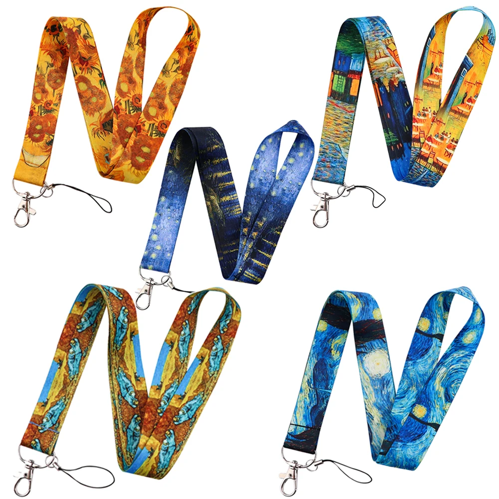 YQ717 художественный шнурок с рисунком масляной живописи для офиса, путешествий, чехол для удостоверения личности, ремешок для телефона, USB-держатель, ремешок на шею, брелок, веревка для ключей, лариат