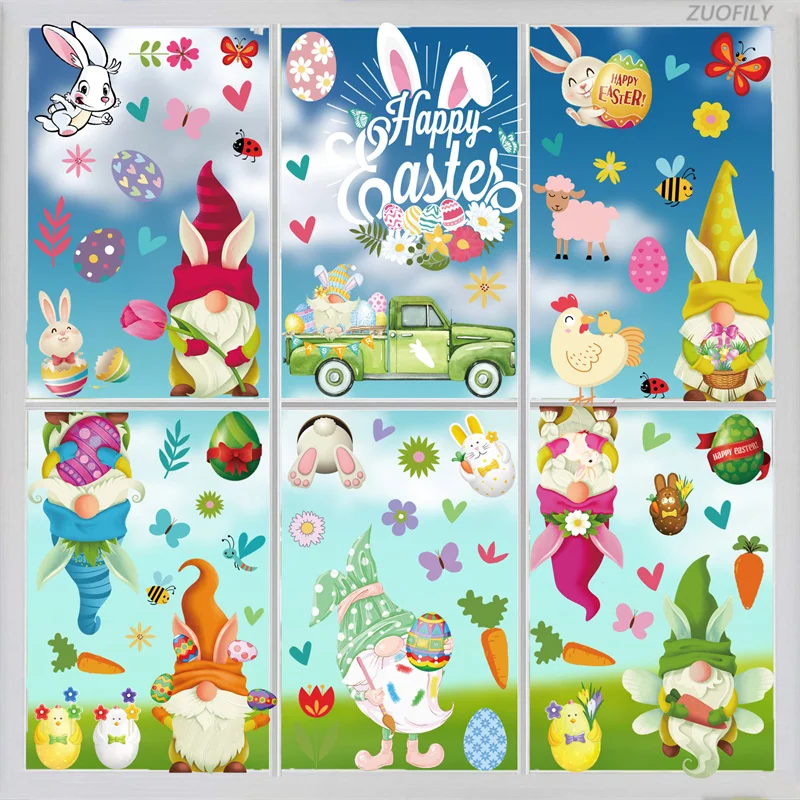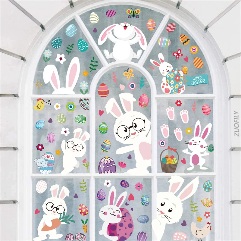 Новинка 2022, пасхальные наклейки в виде яйца в виде зайчика, фотонаклейки на окно, фотообои без клея для декора детской комнаты