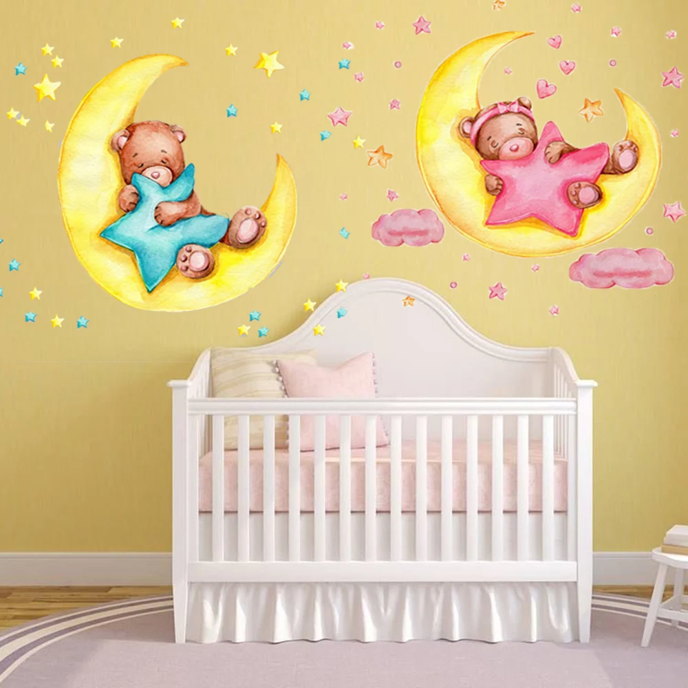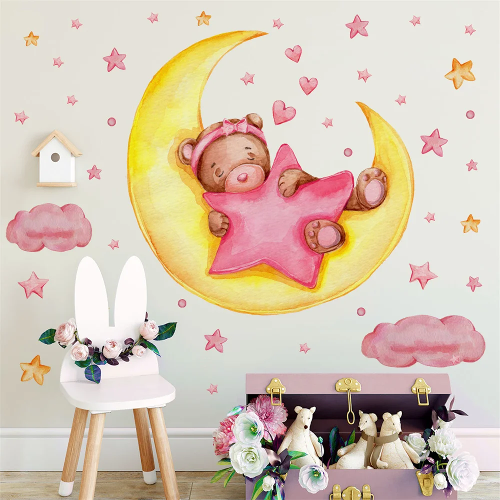 Медведь Банни Звезда Луна наклейки на стену для детской комнаты дом...