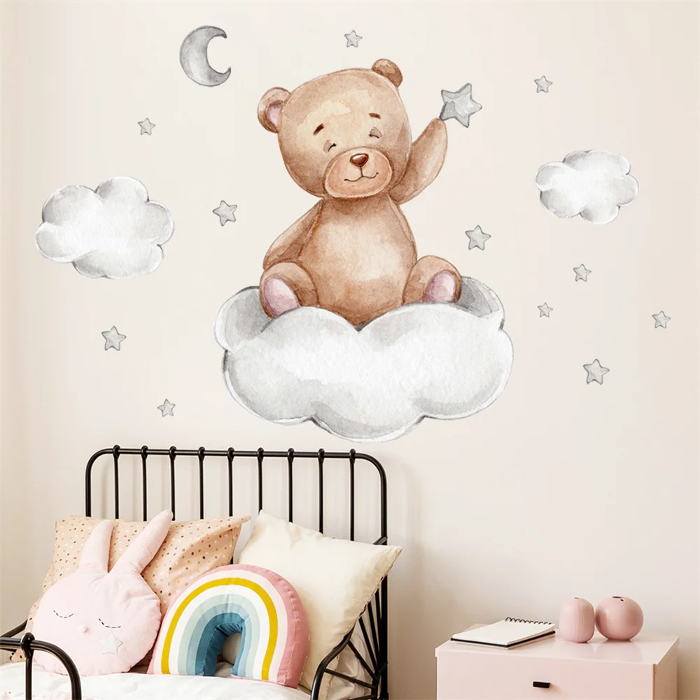Наклейки на стену в виде Луны, облака, воздушного шара для детской комнаты, большие звезды для мальчиков, наклейки на обои, украшение для детской комнаты, медведя, детской спальни